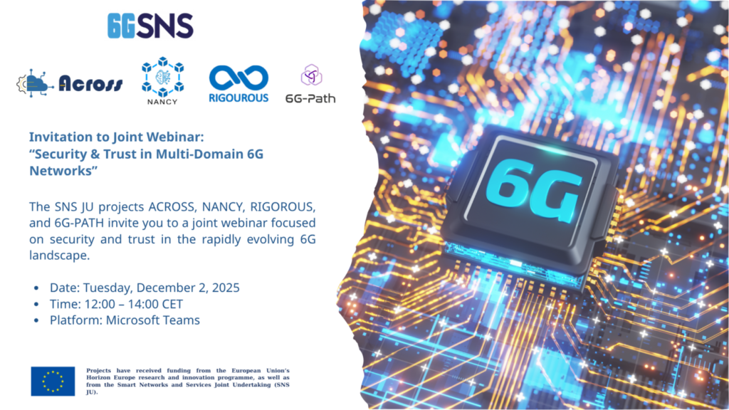 The SNS JU projects ACROSS, NANCY, RIGOROUS, and 6G-PATH are pleased to co-organize a joint webinar dedicated to strengthening security and trust across next-generation 6G networks.